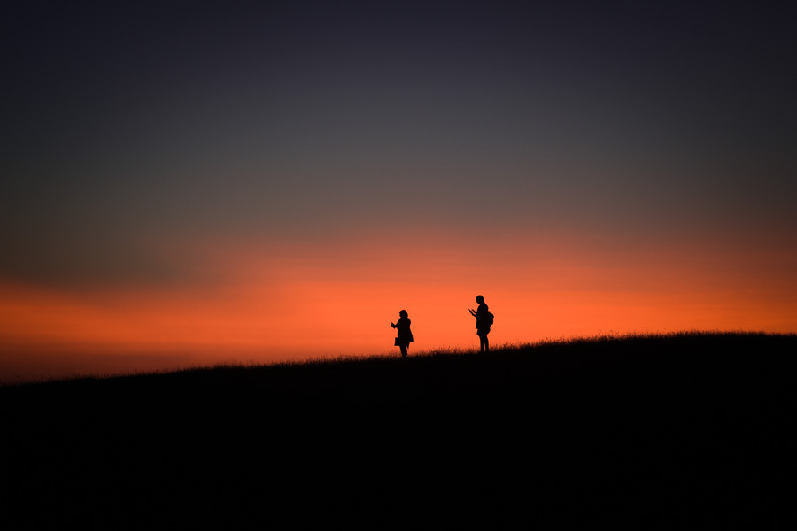 Silhouettes of two women during sunset