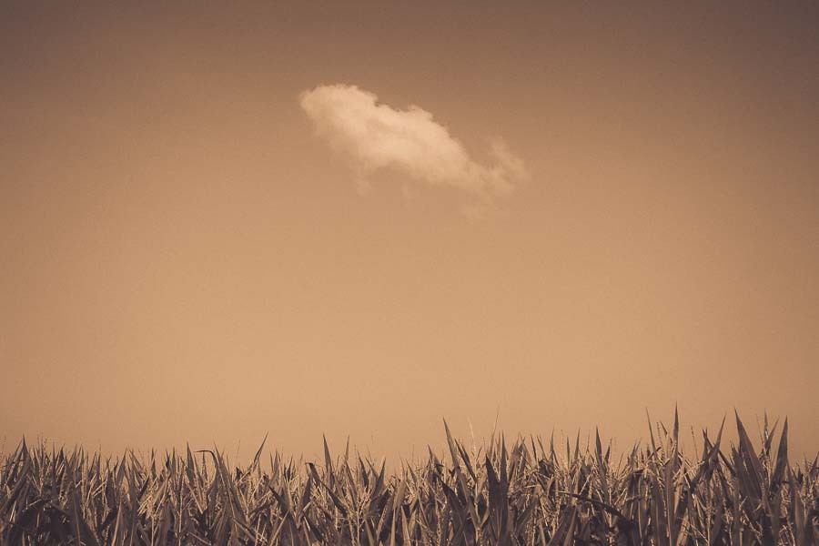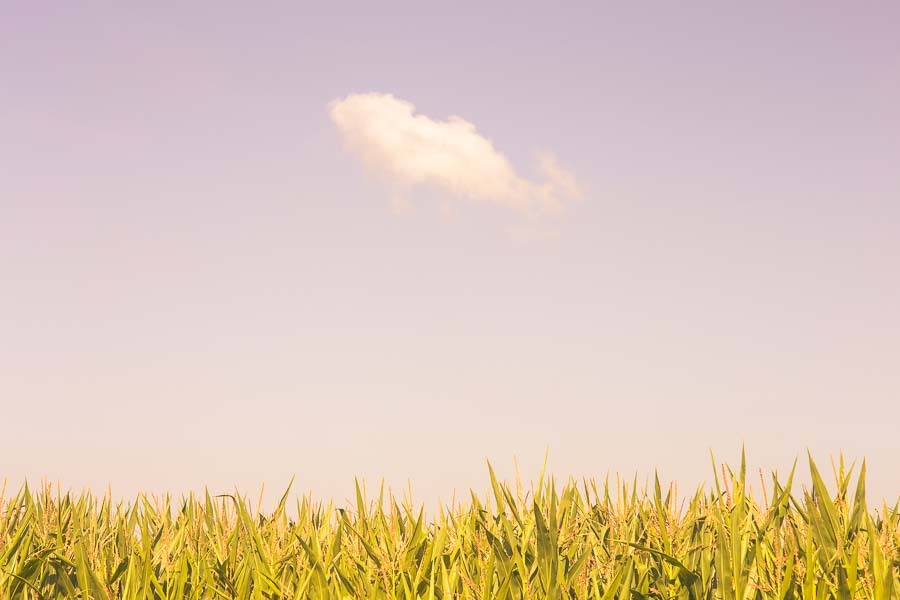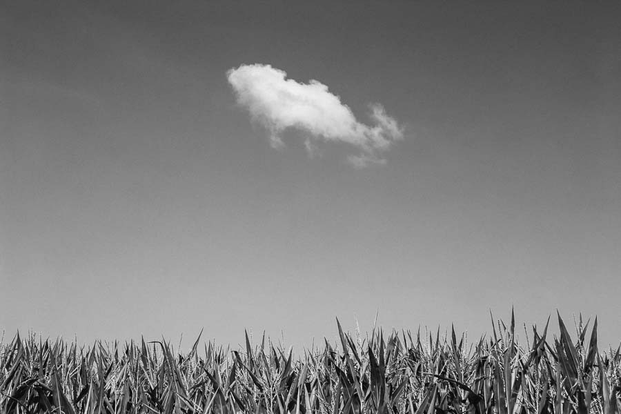 Slanted white cloud over maize field